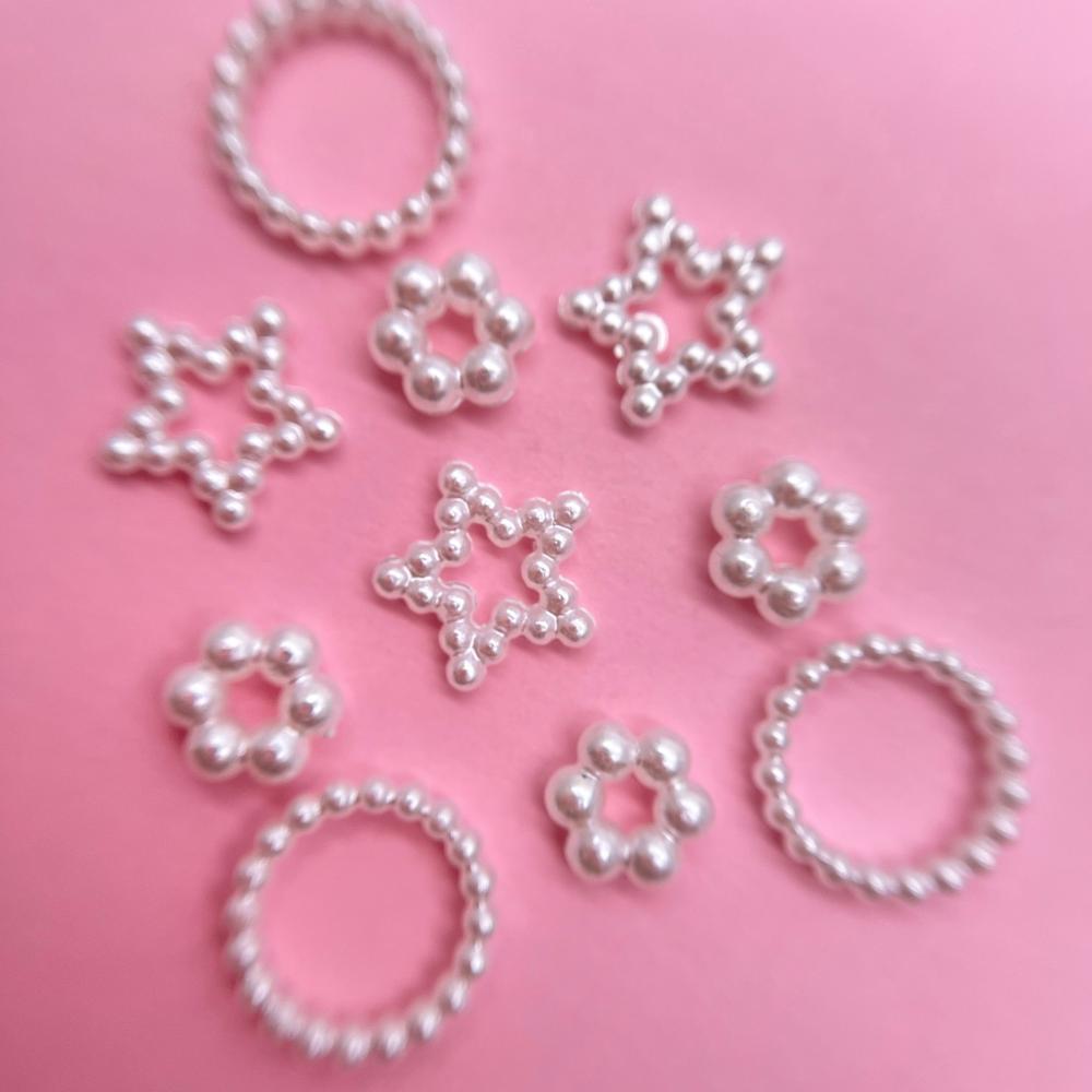 Декоративные, объёмные дизайны в форме разных жемчужных фигурок.