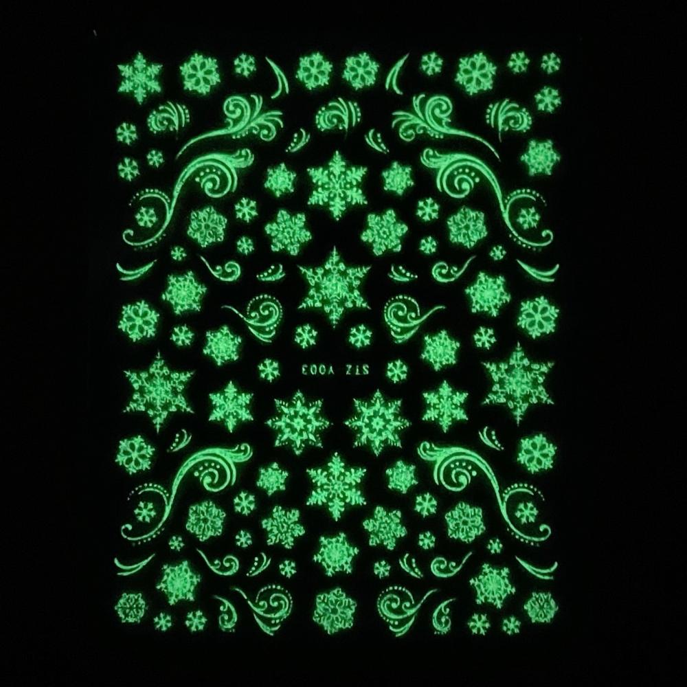 1827 Наклейки снежинки флуоресцентные
